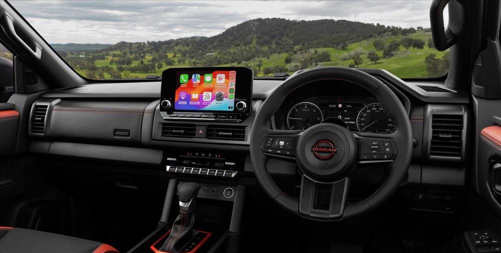 车内是7寸彩色TFT液晶仪表板和9寸中控屏幕,支持Apple CarPlay和Android Auto。高配车型配有手机无线充电面板以及MyNissan Navara Connected Car Services车载联网系统,可通过这项功能追踪失窃车辆所在地点,并可遥控上锁/解锁和遥控启动冷气系统等。顶配Pro-4X则额外获得橘色缝线作为点缀。